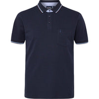 Polo med struktureret overflade og klassisk krave. Materialet er en slidstærk blanding af polyester og bomuld, der giver både form og komfort. Designet er afslappet med brystlomme og knaplukning.