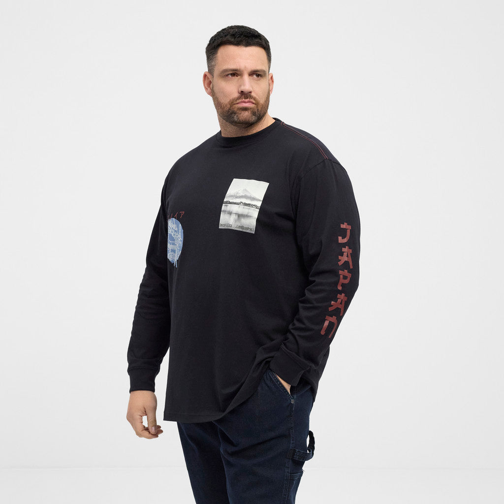 Langærmet T-shirt med print på bryst og ærme. Behagelig bomuldskvalitet og en afslappet pasform.