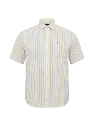 NORTH LATITUDE denim striped cotton linen shirt - Dark Sand