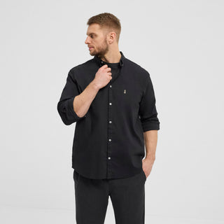 NORTH LATITUDE denim allover printed Cuba collar shirt - Black