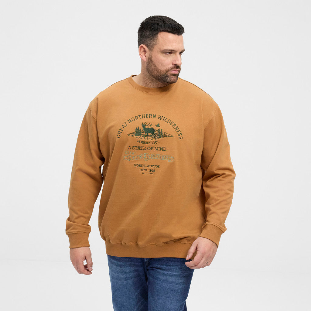Sweatshirt i blød bomuld med broderet frontmotiv i outdoor-inspireret stil. Designet har en afslappet pasform med ribkanter ved hals, ærmer og bund. En varm og komfortabel trøje med karakter.