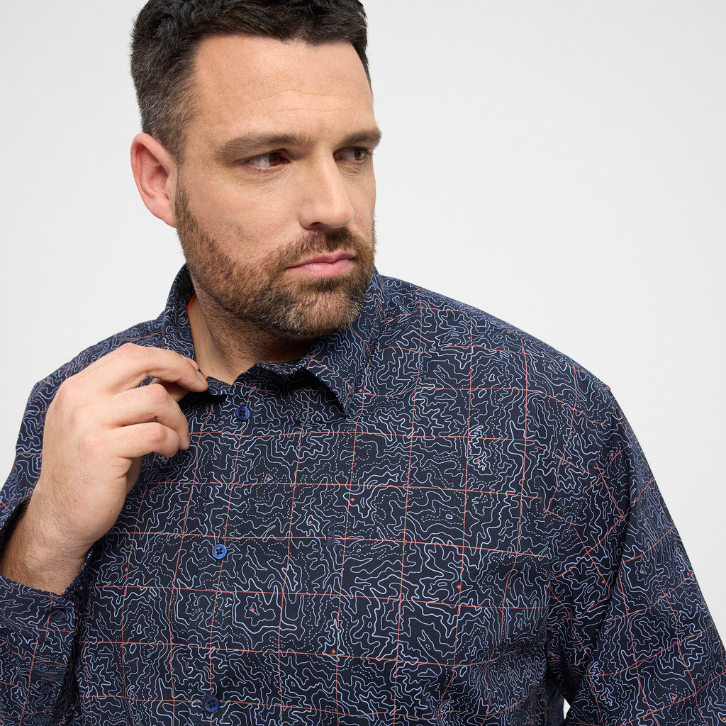 Skjorte med allover print i en blød bomuldsblanding med let stræk. Designet har en klassisk pasform og knaplukning. Et afslappet valg med et grafisk udtryk, der skiller sig ud uden at larme.