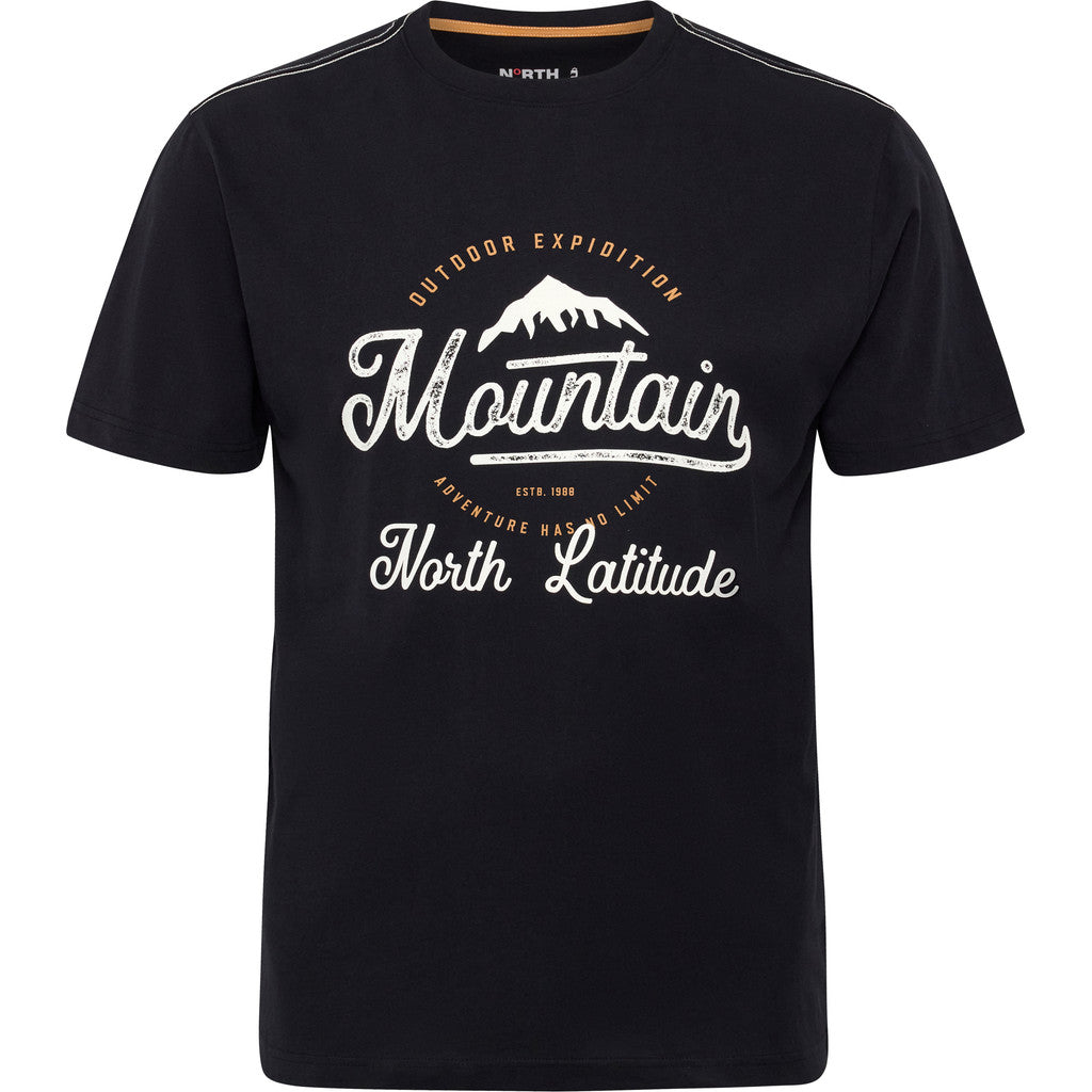 T-shirt med et markant frontprint i outdoor-inspireret stil. Fremstillet i blød bomuld med rund hals og en afslappet pasform. En komfortabel hverdagstrøje med tydeligt grafisk udtryk.