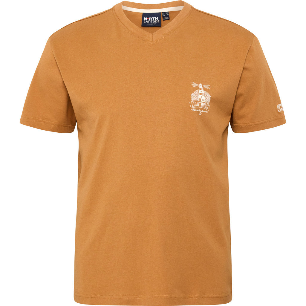 Afslappet T-shirt med V-hals og lille print på brystet. Lavet i blød bomuld med en behagelig pasform, der giver plads til bevægelse. En enkel hverdagsfavorit med et diskret grafisk udtryk.
