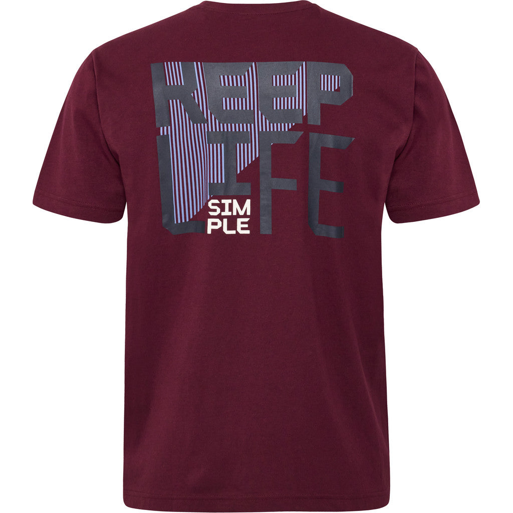 T-shirt i blød bomuld med grafisk print på ryggen. Designet er enkelt foran og markant bagpå. Den afslappede pasform og rene linjer gør den nem at bruge – både alene eller under en åben skjorte.