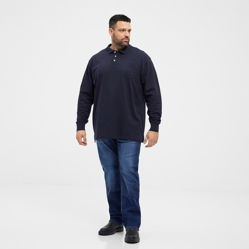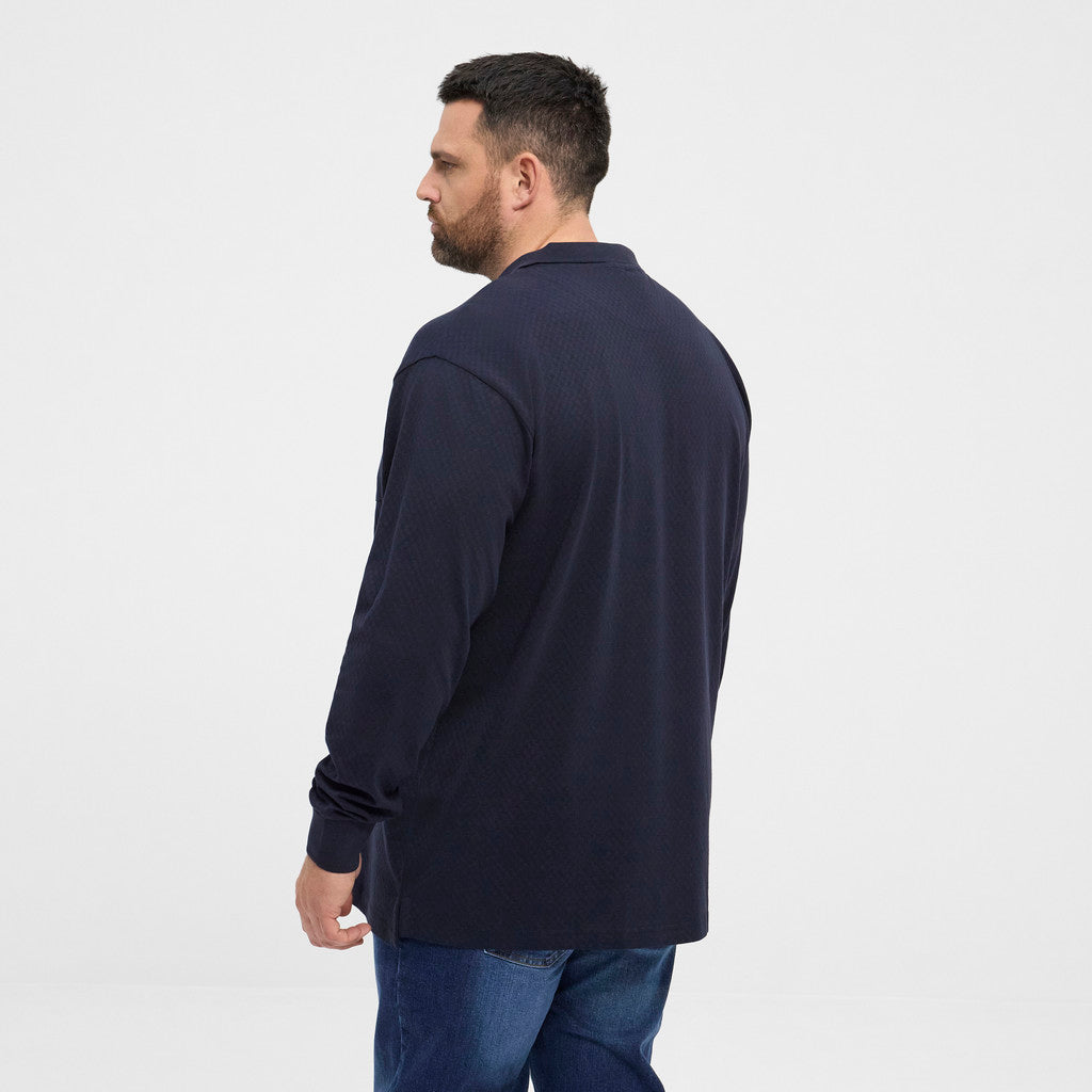 Langærmet polo i bomuld med diskret struktureret mønster. Klassisk design med brystlomme, knaplukning og ribkant ved ærmerne. En komfortabel style, der passer til både hverdagsbrug og lidt pænere sammenhænge.