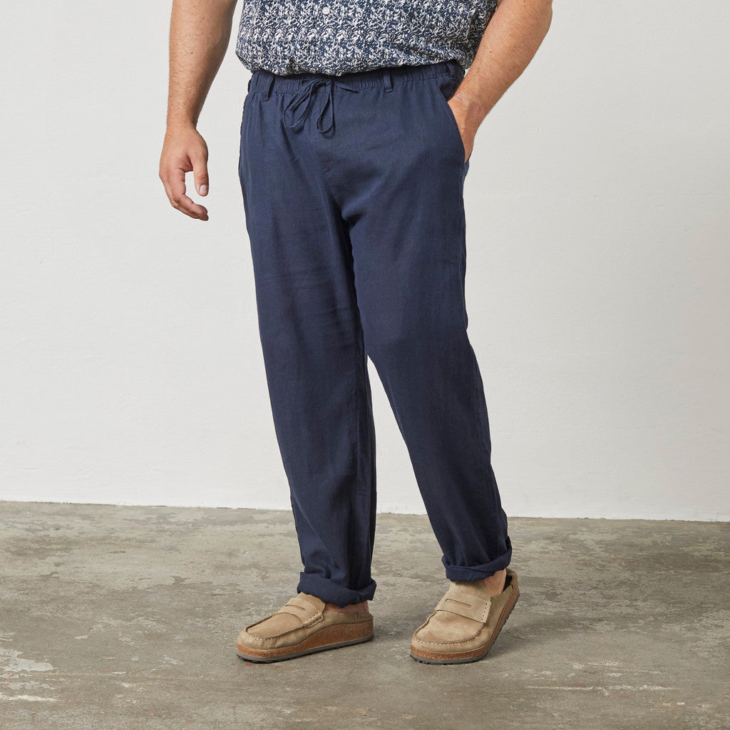 Linen Comfort Fit Pants - Navy Blue
