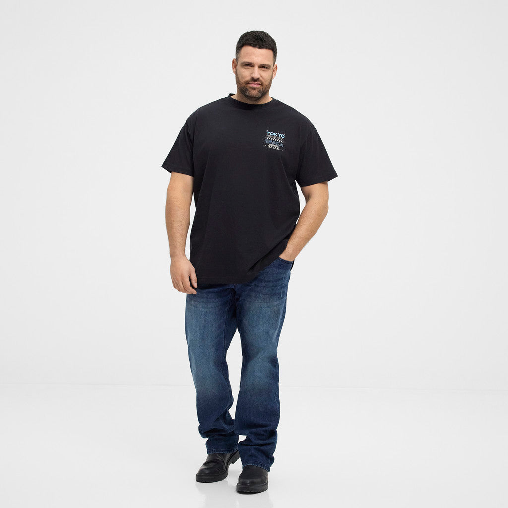 Sort T-shirt med Tokyo-inspireret frontprint. Et enkelt og behageligt valg til hverdagen.
