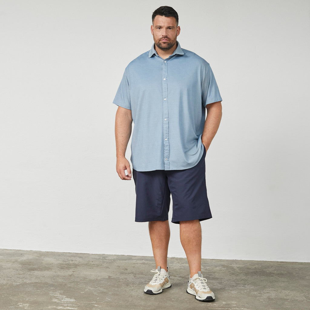 Kortærmet skjorte i let og glat kvalitet med et enkelt, moderne udtryk. Materialeblandingen giver en behagelig pasform med god komfort og et pænt fald, der gør skjorten velegnet til både hverdag og mere afslappede anledninger.